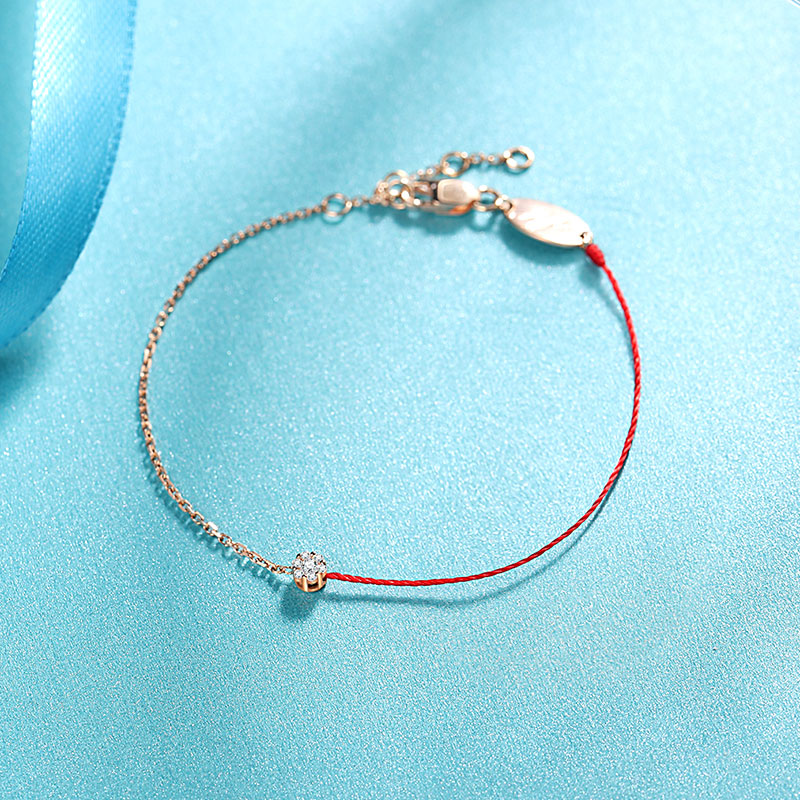 18k金(jīn)玫瑰金(jīn)手鏈小紅(hóng)繩鑽石手鏈k黃(huáng)轉運泡泡鑽石手鏈