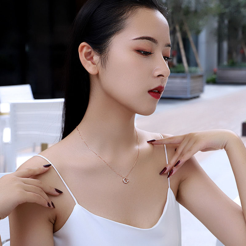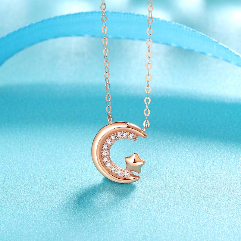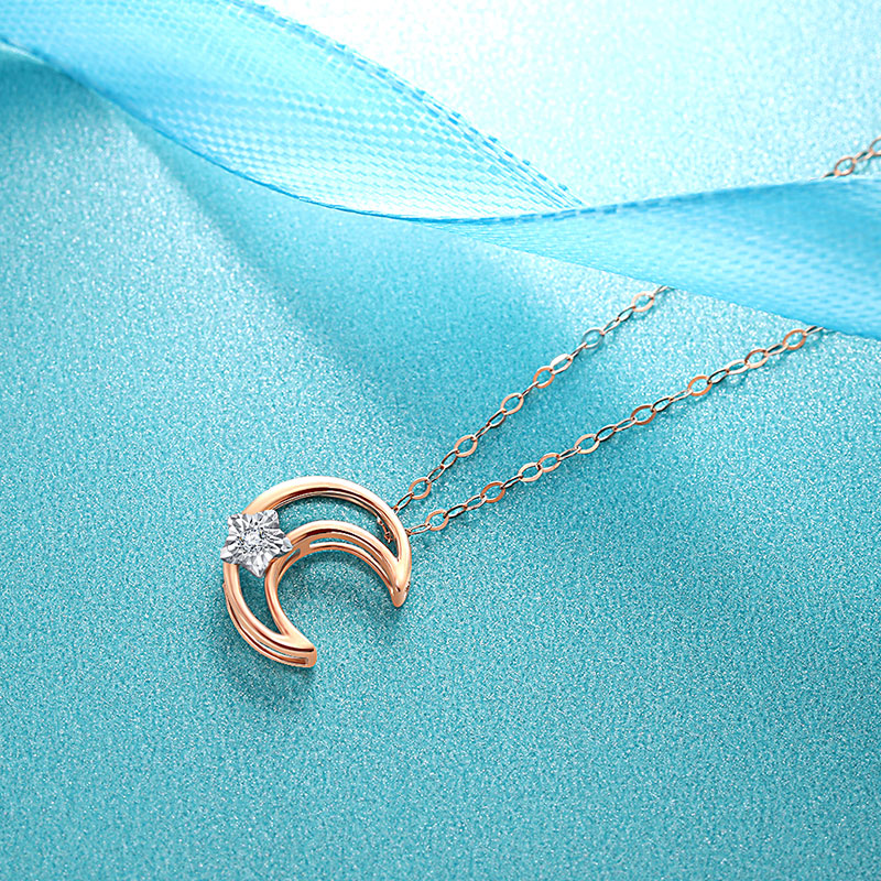 18k金(jīn)玫瑰金(jīn)鑽石月亮吊墜套鏈顯大優雅女(nǚ)送禮經典款項鏈