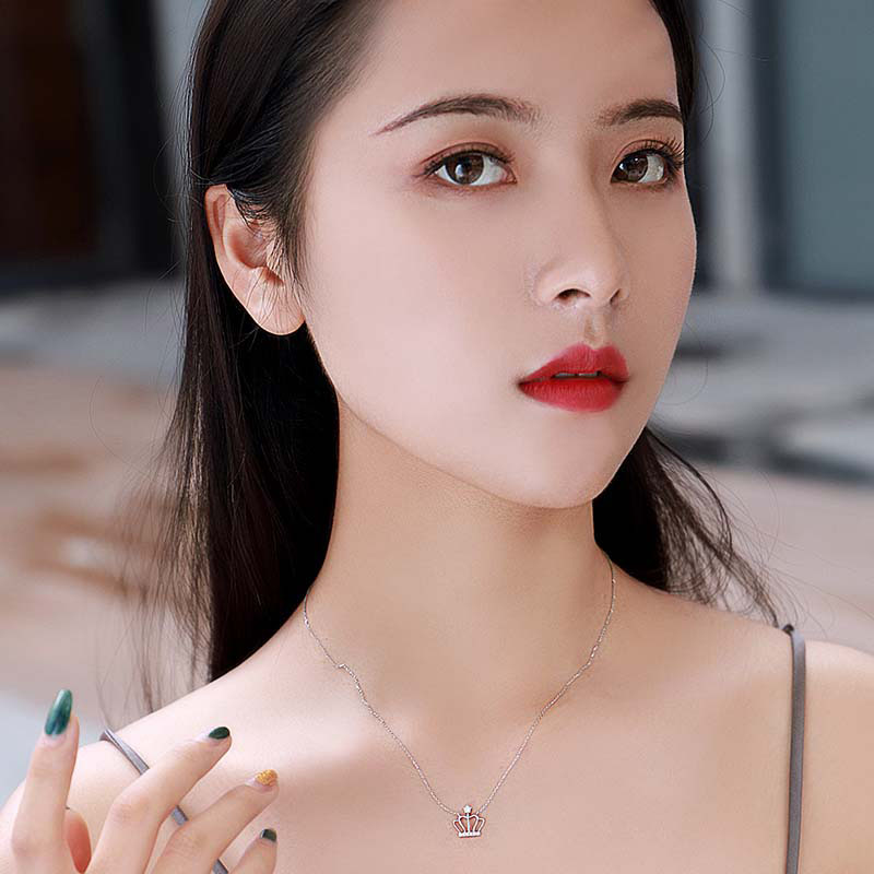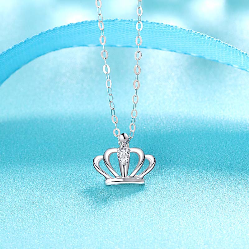 18k金(jīn)鑽石白金(jīn)玫瑰金(jīn)鑽石皇冠項鏈吊墜套鏈大氣專櫃正品