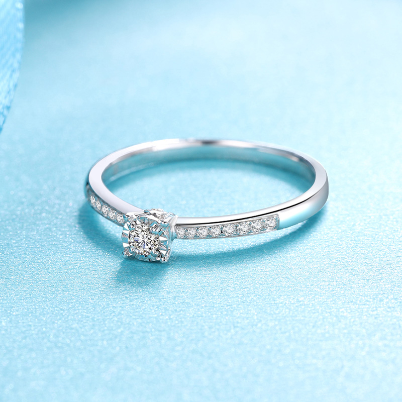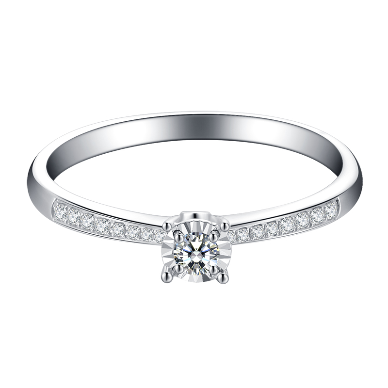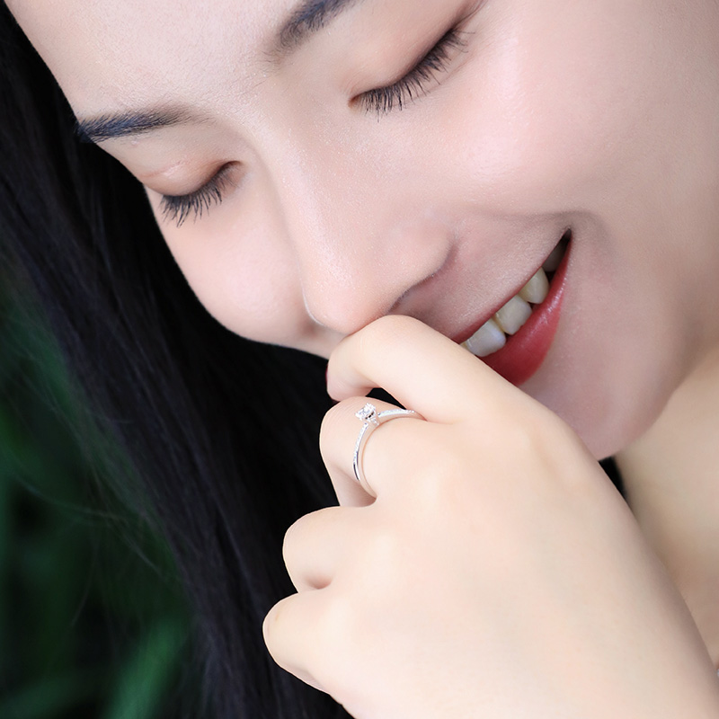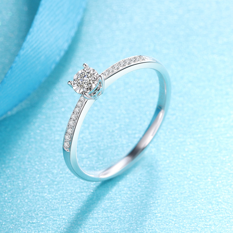 18k白金(jīn)石鑽戒經典皇冠四爪求婚訂婚真鑽石戒指女(nǚ)帶證書(shū)