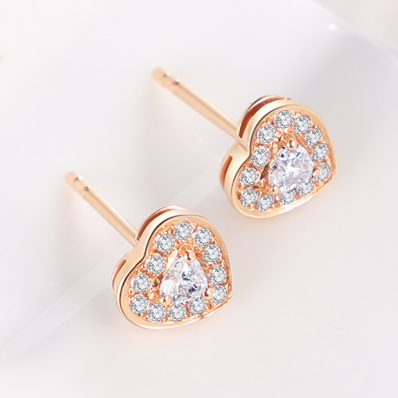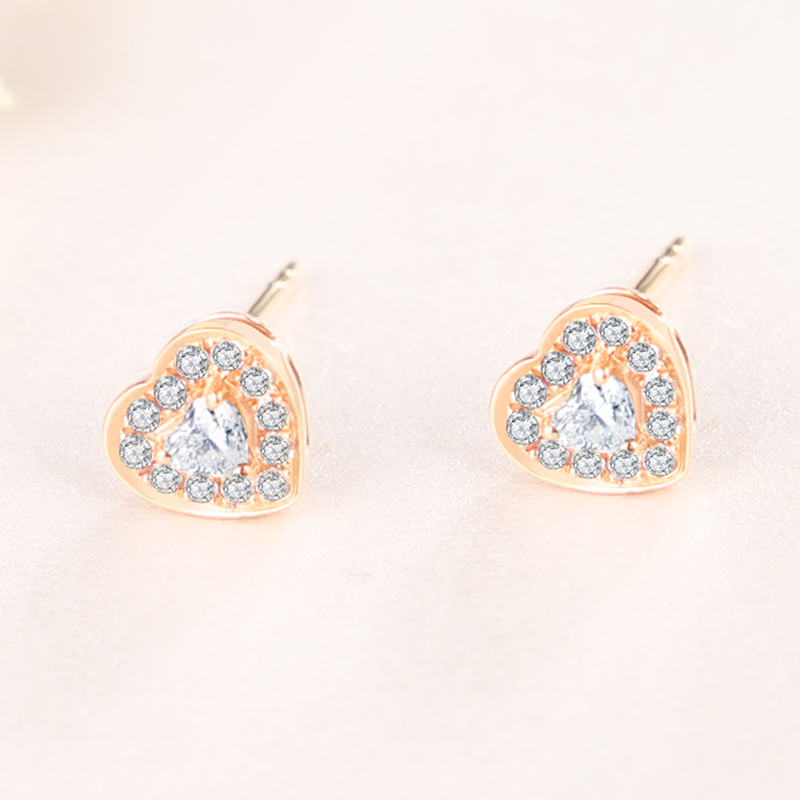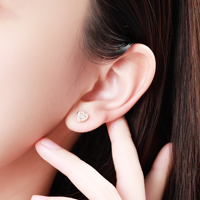 18k玫瑰金(jīn)鑽石耳釘耳環女(nǚ)真鑽正品AU750彩金(jīn)愛心形耳飾