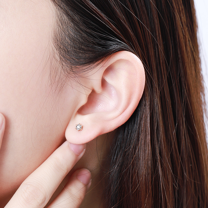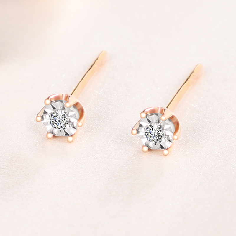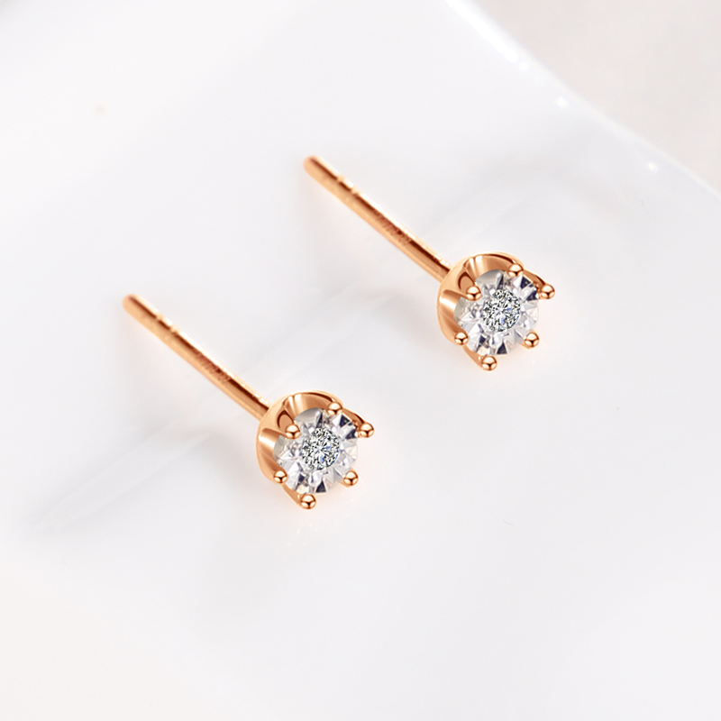 18k玫瑰金(jīn)經典六爪鑽石耳釘AU750百搭奢華氣質彩金(jīn)耳環