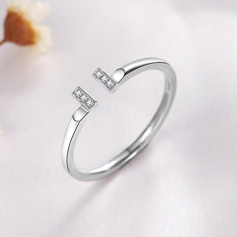 18K白金(jīn)字母雙t款群鑲鑽石戒指時(shí)尚百搭鑽石女(nǚ)戒節日送禮送女(nǚ)友(yǒu)