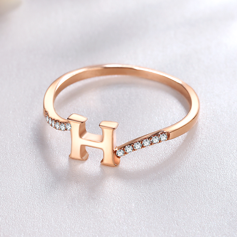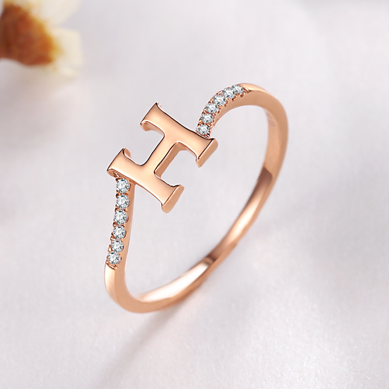 18K玫瑰金(jīn)字母H群鑲鑽石戒指時(shí)尚百搭鑽石女(nǚ)戒節日送女(nǚ)友(yǒu)送閨蜜