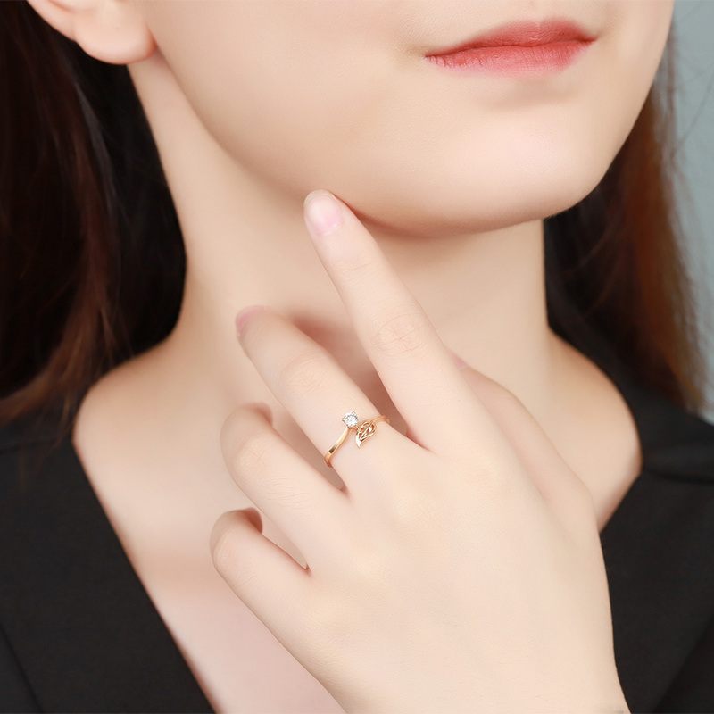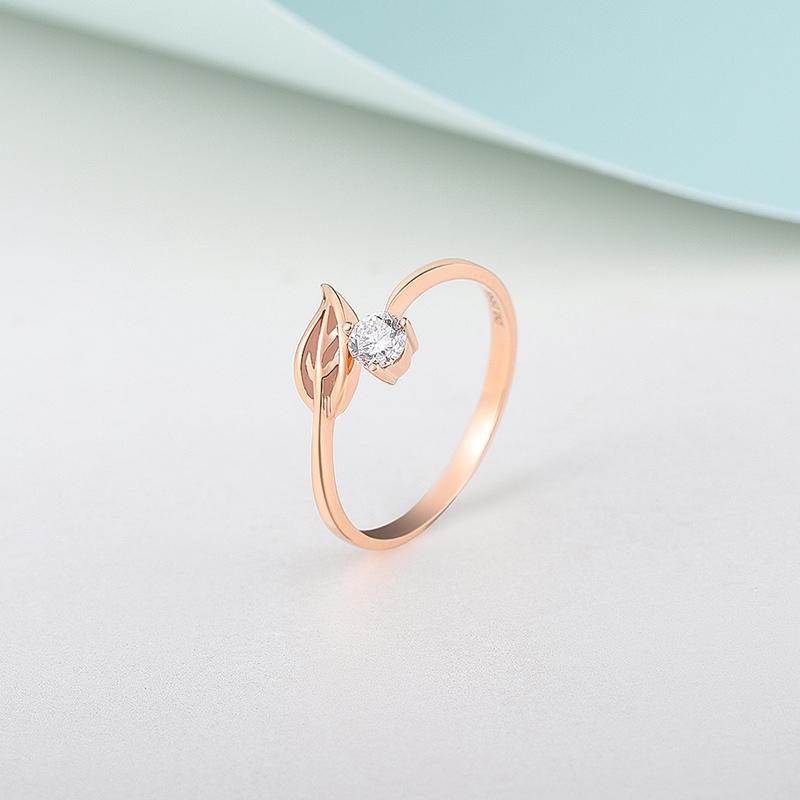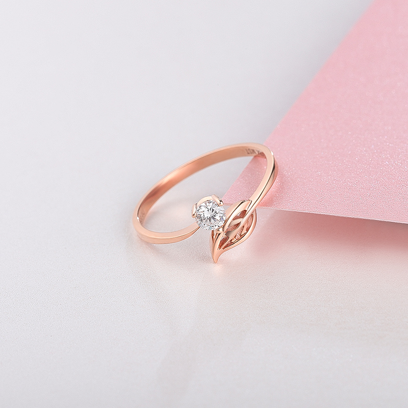 18K玫瑰金(jīn)鑽石戒指三爪鑲天然真鑽時(shí)尚百搭葉子鑽石戒指送女(nǚ)友(yǒu)