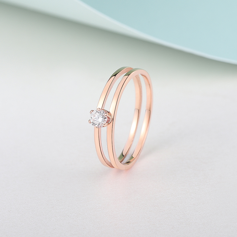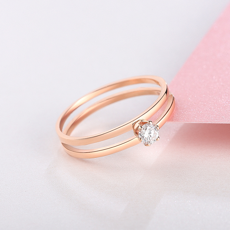 18k金(jīn)鑽石戒指AU750玫瑰金(jīn)雙層指環女(nǚ)款簡約時(shí)尚百搭鑽石戒指送禮