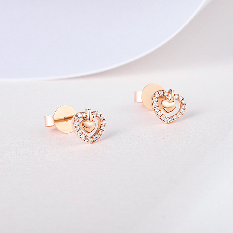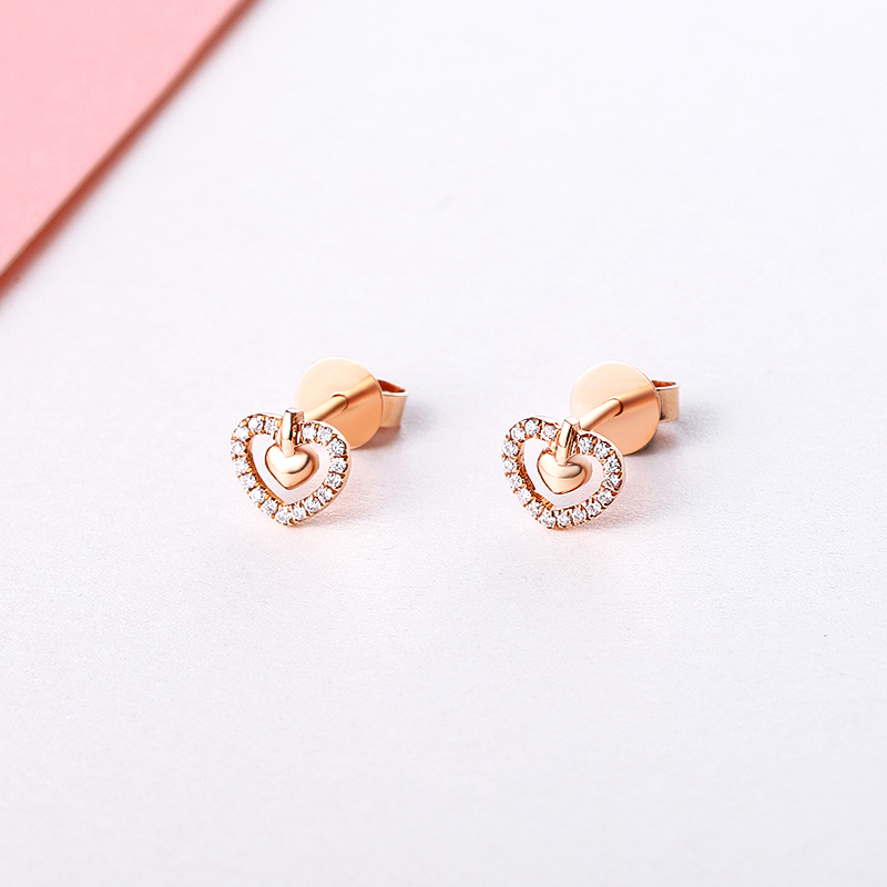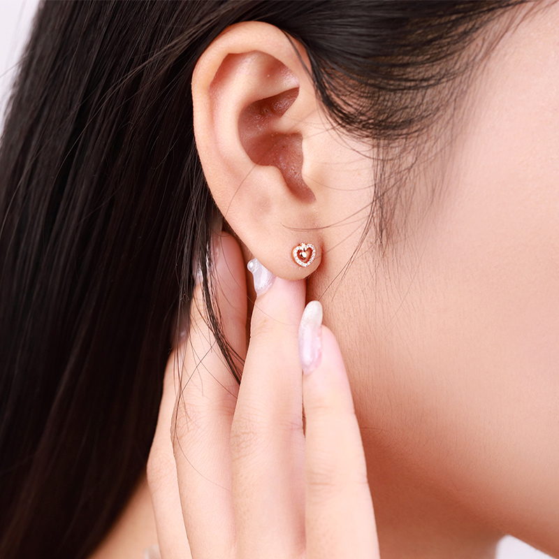 18K玫瑰金(jīn)镂空愛心鑽石耳釘潮流百搭耳飾小清新女(nǚ)款耳釘送閨蜜