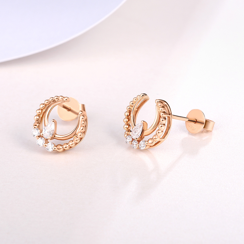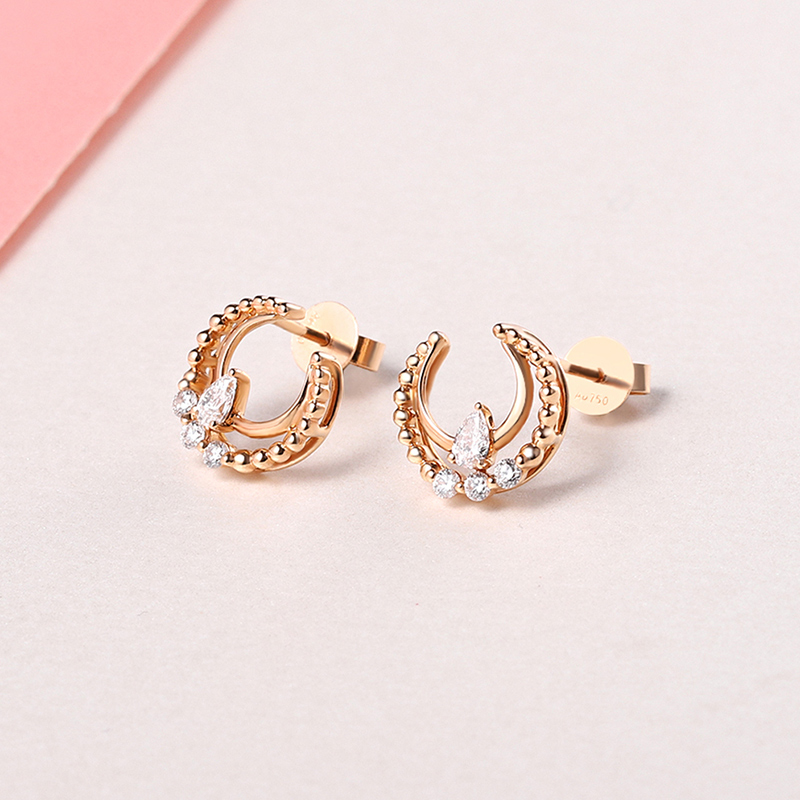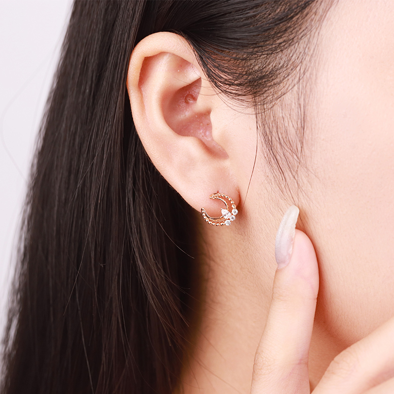 18K玫瑰金(jīn)月牙鑽石耳釘時(shí)尚馬眼鑽石百搭耳飾小清新女(nǚ)款耳勾送禮