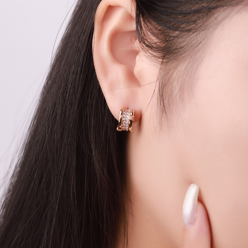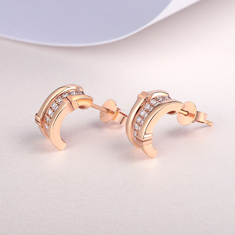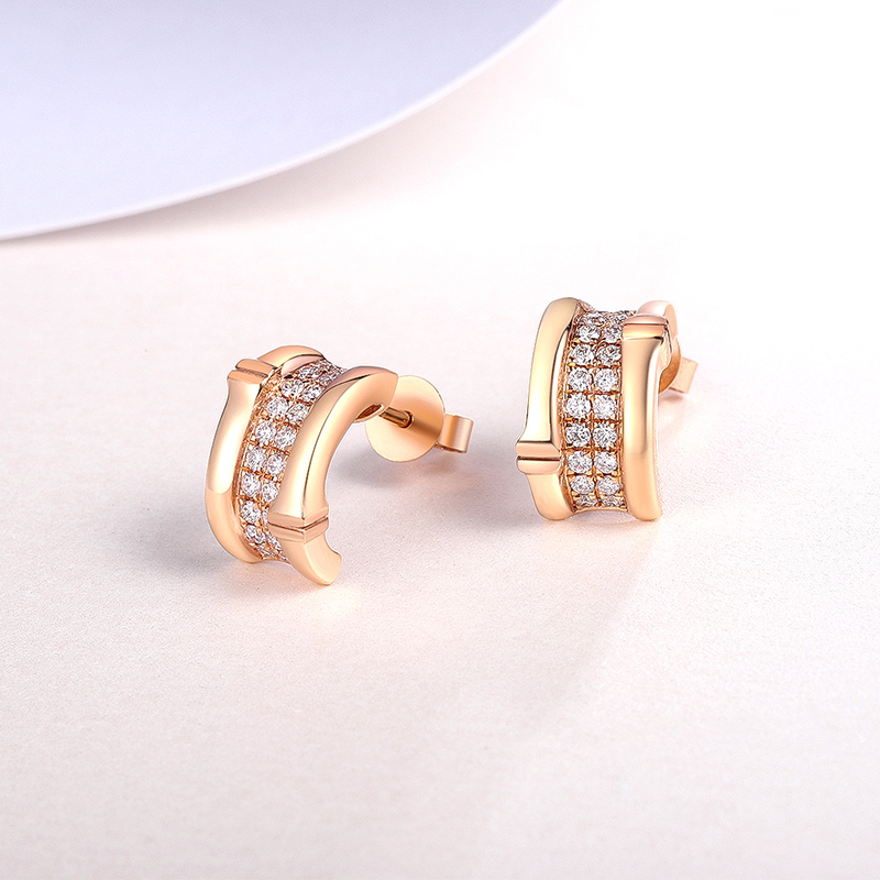 18K玫瑰金(jīn)微(wēi)鑲鑽石耳釘滿鑽半環潮流百搭耳飾時(shí)尚女(nǚ)款耳飾送閨蜜