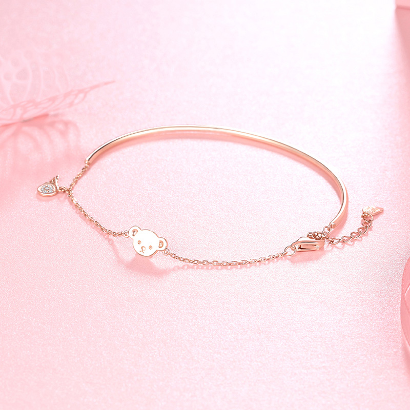 18k玫瑰金(jīn)泰迪熊鑽石手鏈石榴石可(kě)愛童趣小熊手镯送閨蜜送女(nǚ)友(yǒu)